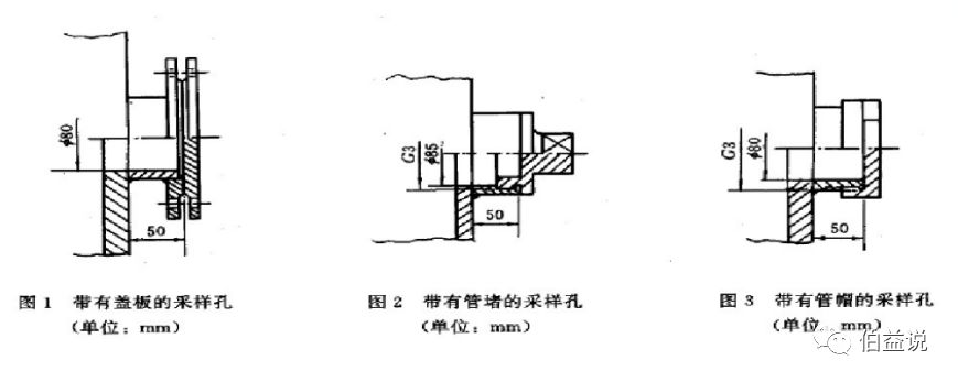 ①在选定的测定位置上开设采样孔,采样孔的内径应不小于80mm,采样孔管长应不大于50mm。不使用时应用盖板、管堵或管帽封闭(如下图所示)。当采样孔仅用于采集气态污染物时,其内径应不小于40mm。