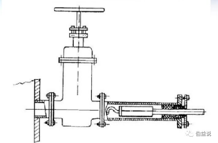 ②对正压下输送高温或有毒气体的烟道,应使用带闸板阀的密封采样孔(如下图所示)
