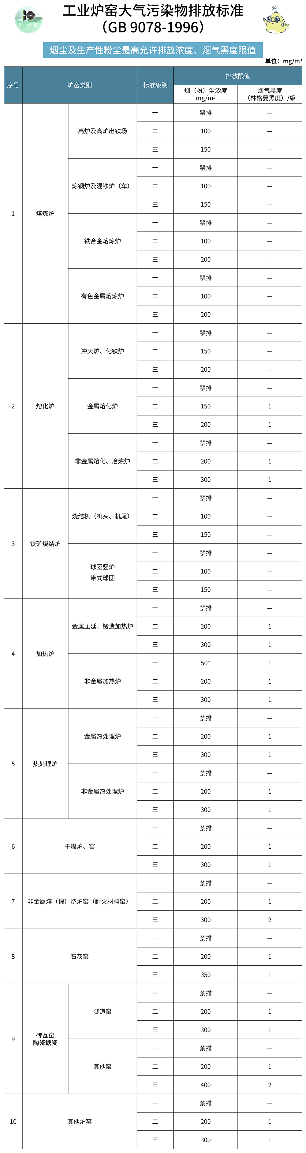 本文中共涉及1条综合排放限值和14个细分行业类别排放限值。