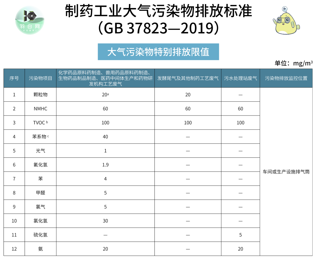 【a】对于特殊药品生产设施排放的药尘废气,应采用高效空气过滤器进行净化处理或采取其他等效措施。高效空气过滤器应满足GB/T13554—2008中A类过滤器的要求,颗粒物处理效率不低于99.9%。特殊药品包括:青霉素等高致敏性药品、β-内酰胺结构类药品、避孕药品、激素类药品、抗肿瘤类药品、强毒微生物及芽孢菌制品、放射性药品。